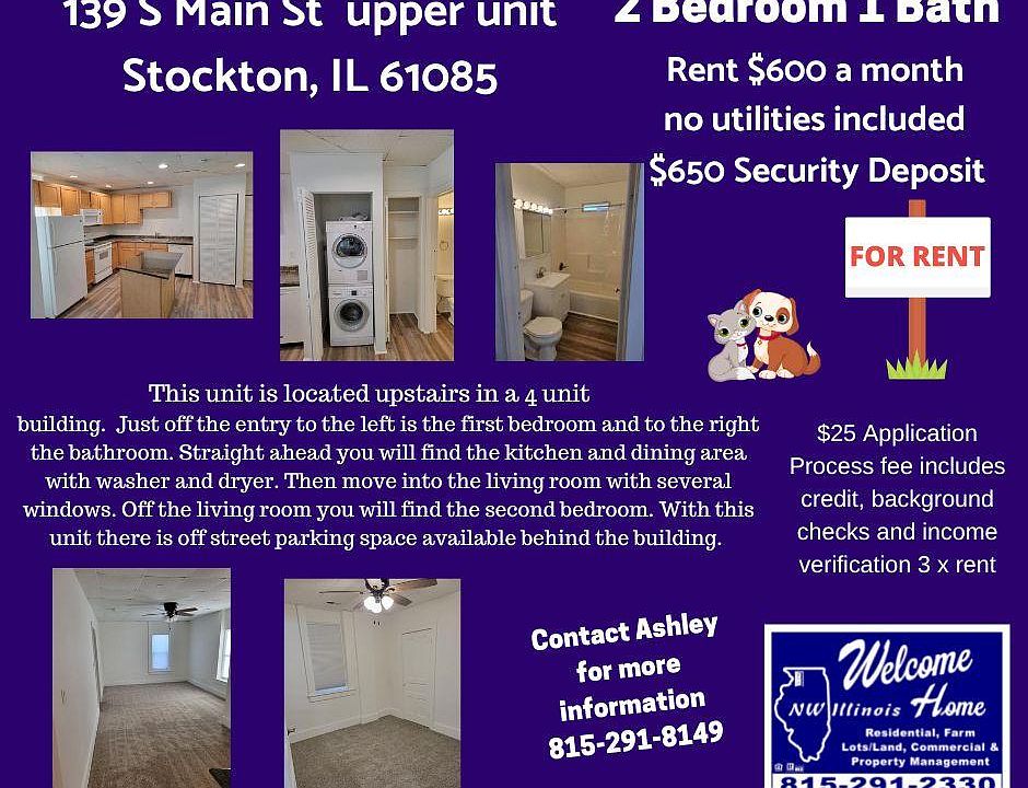 This is an upper unit in a 4 unit building. Walk up to this unit using the outside stairs. Once inside the unit you walk into small hall leading to the open kitchen living area. Closet in kitchen area has stackable washer and dryer. You will also find the full bath off the kitchen area. Off the living area is the 2 bedrooms. This unit has been freshly painted, new flooring, and new kitchen layout in Nov 2022. Tenant is responsible for all utilities. Applications fee of $25 per person over the age of 18. Applications must be summitted and approved prior to in person showings. Qualifications for unit is 3 times rent in take home income, pass background and credit check, rental history, and must be able to obtain utilities in your name prior to move in. Please call or text Ashley with any questions Tenant is responsible for all utilities. No smoking