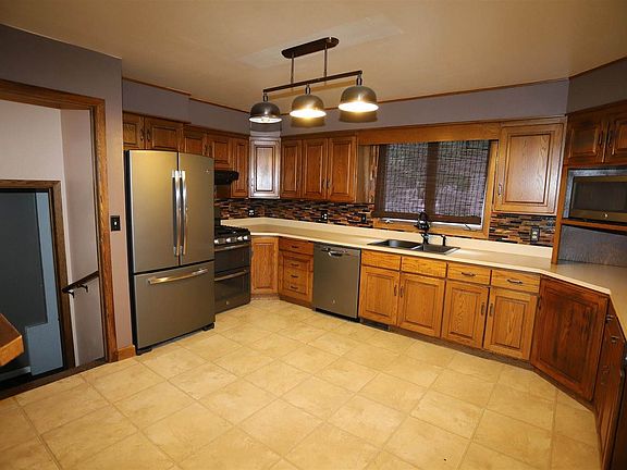 Here's an opportunity priced competitively! This ranch style home offers some unique benefits. The most noticeable is the updated kitchen with newer appliances. The room off the kitchen is a converted former third bedroom that could be used for a dining area, crafts room or office. There are two good size bedrooms and a full bath as well as a large living room on the main. In the lower, you'll notice a kitchenette area leading into the family room and a third bedroom (egress window) with a private 3/4 bath. There's also a large unfinished storage area with laundry hookup (washer and dryer included). The double car garage is heated and there's additional off street parking and a yard shed for storage. Contact your Realtor today before it's gone!