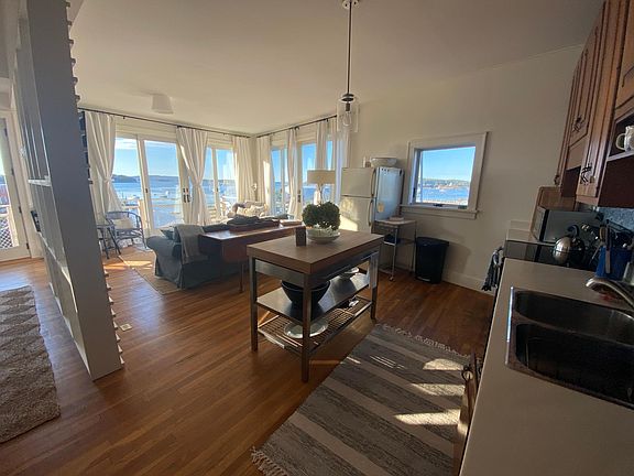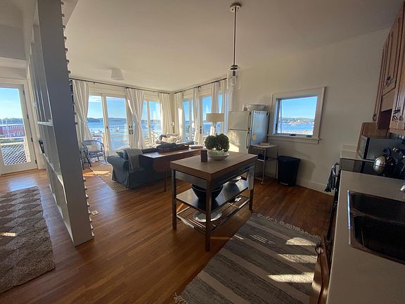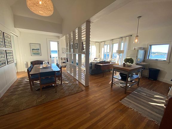 Seabreeze on the Harbor is a five bedroom, three bathroom oceanfront home converted in to two separate apartments. Seabreeze on the Harbor is built into the lovely seaside of Stonington harbor. The home is versatile and includes many updates over the last few years. We welcome larger groups to lease the whole home or will happily rent level one (bottom unit) or level two (upper unit) separately to individual groups. Seabreeze on the Harbor 2 (Second Floor) is a two bedroom, one bathroom apartment. The apartment has a nice open concept with living area, dining area and kitchenette all in one space. The home has ceiling to floor windows on the water side, welcoming in the views of Smalls Cove and beyond to Stoningtons bustling thoroughfare. The space is set with a dining area for eight. The living area has a couch and two arm chairs postioned to enjoy lovely ocean views. From the living area step out on to the seaside deck to enjoy all the sights and the sounds of the harbor in your front row seat. The kitchen has all the basics you'll need to whip up most any meal. Seabreeze has two bedrooms. The first of the bedrooms has a full bed and an adjoining dressing room with closet. The second bedroom has a full bed, a closet and dresser. Seabreeze does have a full bathroom with tub & shower. There is one front door into the house, so upper and lower tenants will both be able to use that for daily coming and going. This front door to Seabreeze opens into a 1st floor communal hall. Off this hall to the right is the interior "front door" to the upper unit. Open it and stairs lead up to the apartment. There is one small quirk. The bathroom for this unit is off the landing at the top of these stairs, inside the unit but on the fringe of the living space. Seabreeze on the Harbor 2 is a lovely place to spend some down time. Recharge, take in the views (which will include some lovely sunsets) and eat the sweet seafoods that the Maine coast has to offer. Contact us to book your time in this sweet rental option today. Tenant prospects will be asked to complete a rental application and sign a lease for any tenancies. The Homeowners will consider pet tenancies on a case to case basis. The owner is including utilities in the rental amount but will have an escalation clause if gallons used in this years cycle are more than (5%) higher than previous years consumption