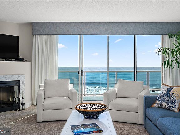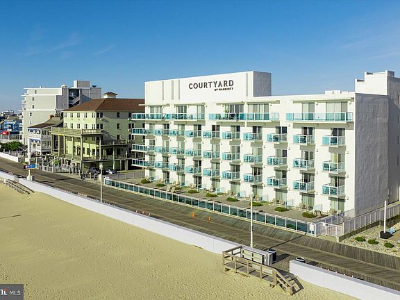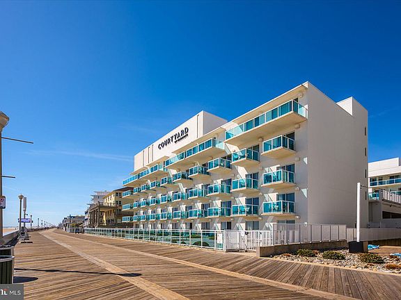 Welcome to 505 Miramar, the premier location in the private residences on the top floor of the Courtyard by Marriott. The fifth floor is exclusive to nine luxury condominiums, only three of which are direct oceanfront. Breathtaking ocean views can be enjoyed as soon as you enter this end-unit penthouse. Step outside to the huge oceanfront, wrap-around deck for the best panoramic beach and boardwalk views you'll find in Ocean City. The bright, open living room and dining room feature a fireplace, floor to ceiling windows and sliding glass doors. Open floor plan continues to the upgraded kitchen with granite countertops, barstool seating and of course bright blue ocean views. The primary bedroom has great southern exposure and additional deck with more beach views. Spacious primary bathroom includes a jetted soaking tub, stand-up shower and dual sink vanity. Built in 2009, this well maintained hotel/condo has amazing year round amenities; heated pool, fitness center, restaurant, 24 hr security, in-house management and maintenance. All of this with an incredibly low condo fee! This is truly a unique and rare opportunity to own a direct oceanfront penthouse on the famous Ocean City boardwalk.