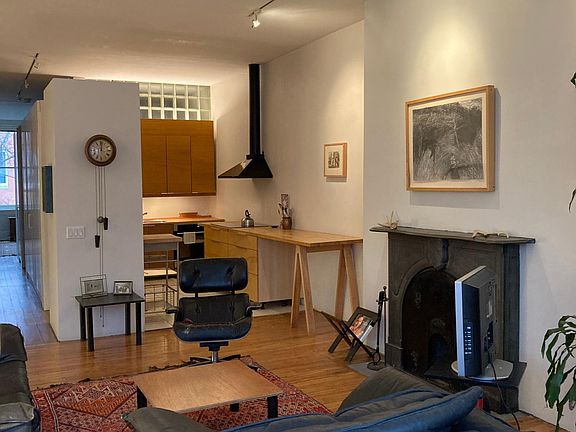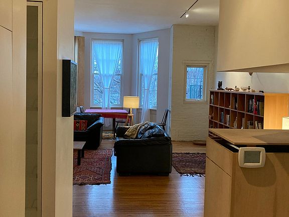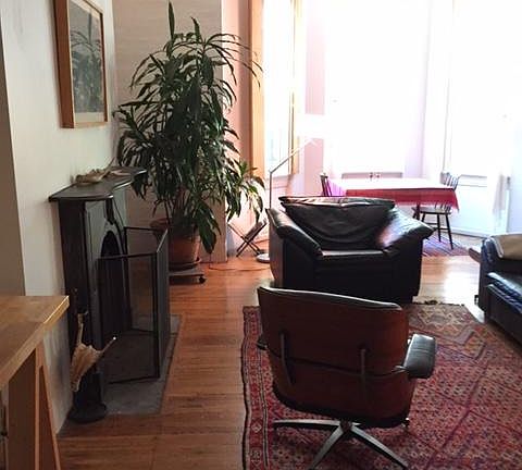 Sunny and spacious, this fully furnished one bedroom flat with full bath and kitchen is available for short- and long- term rental. Located on the second floor of a row home built in 1890, the apartment features a comfortable mix of antique and contemporary furnishings. The entire home has been completely renovated by the award-winning architect-owner who blends a striking contrast of historic elements with contemporary design. A large organic garden brings fresh produce to the property. Chickens range free in the backyard. The location is perfect for access to all points north and downtown, including Johns Hopkins University, Johns Hopkins Hospital, and the University of Maryland Medical System. From the apartment, it's an easy walk to Baltimore's business district, theatre, movies, restaurants, and shops. The apartment is only 1.5 miles from Baltimore's world-famous Inner Harbor, National Aquarium, and 2 miles from Camden Yards and Ravens Stadium. Culture abounds with a short walk to the Meyerhoff Symphony Hall or Lyric Opera House. The Maryland Institute College of Art (MICA) and University of Baltimore is a stone's throw away. Destination restaurants in the neighborhood include Tilted Row, The Cook House, and On the Hill Bistro. Neighboring Mt. Vernon with Center Stage, the Enoch Pratt Free Library, Walters Art Gallery, Peabody Conservatory, and more shops and restaurants is a fifteen-minute walk away. Public transportation is within blocks of this flat and includes the light rail Cultural Center stop on Howard Street and the State Center subway stop on Dolphin. Penn Station is a seven-minute walk and BWI airport a 20-minute drive (or take the light rail). Access to route I-83 is less than three blocks from house. No smoking is permitted.