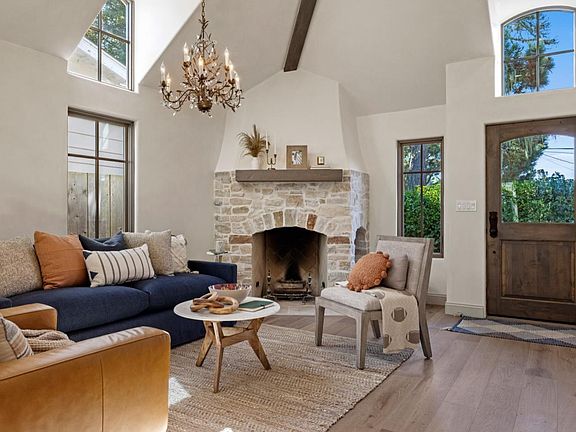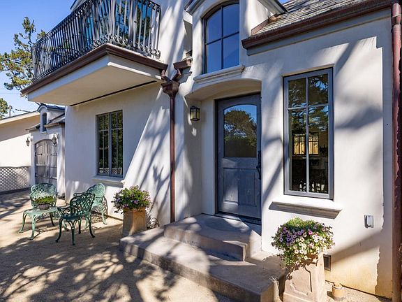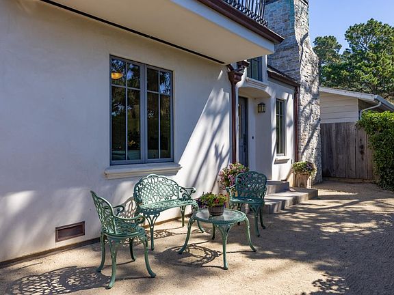 This spectacular French Country home designed by renowned architect Jun Sillano of International Design Group was built in 2008 and completely renovated in 2022. This special Carmel-by-the-Sea Home is loaded with charm. As you enter take in the fantastic cathedral ceilings filling the entire living area with natural light. New wood flooring, new hand plastered walls throughout and beautiful wood beams come together creating old world charm. The living room features a custom stone fireplace. The open kitchen has professional appliances, custom cabinets, fantastic emerald quartzite island and gorgeous tile. French doors lead into a sun drenched very private backyard, perfect for entertaining. The upstairs bedroom suite hosts a gas fireplace and a charming balcony. The added bonus is a delightful separate one bedroom guesthouse across the outdoor garden. Also featured is a detached garage and utility room. Walking distance to Carmel Village make this the perfect Carmel dream home.