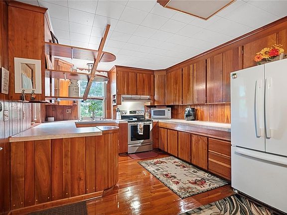 Get ready to fall in love! This is your opportunity to own this gracious circa 1856 brick farmhouse in East Huntingdon Township now situated on 57 ACRES!!! Come make this your homestead and live off the land! This property would make a great wedding venue and more. The possibilities are endless! The home is well maintained with so much charm & character! Kitchen features custom cherry cabinets & plenty of storage. Custom cherry hardwood flooring & paneling throughout! The living room features a stone cased wood burning fireplace. Large front porch overlooks the farm in the quiet country setting. Upstairs are 3 bedrooms & a full bath. The basement is finished with a bedroom, gorgeous full bath, laundry room & office area. Large bank barn & outbuildings. Fenced pastures & tillable land for your crops along with some wooded property. Property borders Jacobs Creek and has beautiful pastures! Free Public Sewage Tap. Possible income from leasing farm or rental of the "schoolhouse