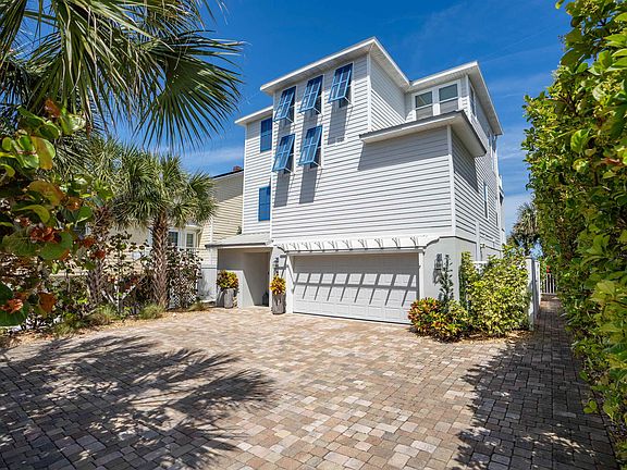 Best location in St. Augustine Beach! Premier, private oceanfront retreat just two blocks north of A St. Walk to restaurants and shops in the heart of St. Augustine Beach! Enjoy vast, unobstructed ocean views from nearly every room. Easily access a pristine non-driving portion of beach via the 2nd Street boardwalk just steps away. Built in 2016, this meticulously cared for owner-occupied residence boasts an elevator and a reverse floor plan to maximize ocean views. Downstairs, the 4th non-conforming bedroom suite makes an ideal guest quarters, spacious enough for a king bed, living area and half bath. Step outside the guest space to find a heated outdoor shower, hot tub and large paver patio. Your guests may never want to leave! On the 2nd level, all three bedrooms feature full ocean views and sliders out to a covered porch to take in the ocean breezes. The master bedroom features plantation shutters and attractive custom built-in cabinetry that provides ample storage & display space. The master bath features a beautiful mosaic tile walk-in shower, double vanity and custom closet system. Laundry is also conveniently located on the 2nd floor bedroom level. The 3rd floor is reserved for the living, dining and kitchen spaces. The comfortable, open concept top floor features the same tasteful fixtures and finishes present throughout the rest of the home. And of course this level is highlighted by absolutely stunning, panoramic oceanfront views. The kitchen is equipped with GE Cafe appliances, including a gas top range. The living room is fitted with more handsome custom built-ins. And there's a powder room conveniently tucked away so you don't have to travel downstairs. Outside, you can take your pick of sun or shade from the open and covered porches. You can also enjoy peace of mind as many practical updates have been taken care of as well. From the electric storm shutters for the top floor sliders to the new AC in 2022 to the portable generator that conveys with the house, the heavy lifting has been done for you. On the exterior, the low maintenance landscape ensures more time at the beach and less time in the yard. Further, the landscape service contract has been paid in full through 2024 - so hurry up and relax! Located high and dry in flood zone X, where flood insurance is not required but is available and affordable. Most furnishings negotiable. Start living the beach lifestyle you've been dreaming of!