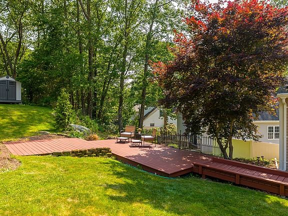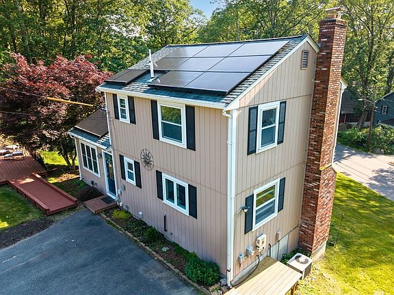 Dreaming of summer evenings with a sunset over the lake, while you sit back in a chair & relax after a long day? Nestled near the lake Maspenock this well-maintained Colonial may be your new home. House offers 6 rooms, 2 bedrooms, 1.5 baths, and a finished walkout basement. Freshly painted throughout, including updated entry doors. The first floor offers a spacious living room with fireplace, updated oak kitchen with granite counters & stainless-steel appliances, and a bright family room with vaulted ceilings opening to a backyard deck — perfect for relaxing or entertaining. Upstairs: 2 bedrooms with step-in closets and a renovated full bath with walk-in shower. The finished basement leads to a covered deck and backyard. Modern custom window shutters in every room, with blackout options in bedrooms. Located on a landscaped corner lot on a quiet dead-end street, close to Rte. 495, shopping, Sandy Beach, and Lake Maspenock. A/C, mini-split system, and Solar Panels via PPA.