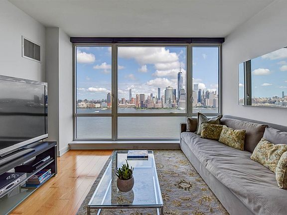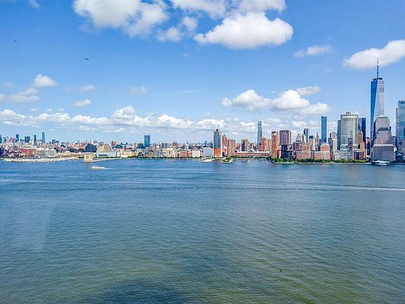 Welcome yourself to this 32nd floor, East-facing, waterfront 1-bedroom/1.5-bathroom home with unbelievable direct NYC & River views. Enjoy jaw-dropping views through a wall of floor-to-ceiling windows inside your unit, or some outdoor time on the common building terrace while marveling at the city. This oversized & spacious unit features an ultra-sleek Kitchen with Pedini cabinets, glass cabinet accents, quartz countertops, under-cabinet lighting and a full range of stainless steel appliances. The expansive Bathroom showcases luxurious, imported finishes throughout, with marble tiling, double sink, lots of storage and separate shower & tub. Other features include gleaming hardwood floors, custom California closets, recessed lighting, laundry in unit & one valet parking space included. Light Rail, PATH & ferry all in close proximity. Building features 24-hr concierge, pool, fitness room, spa, kids play area & much more!