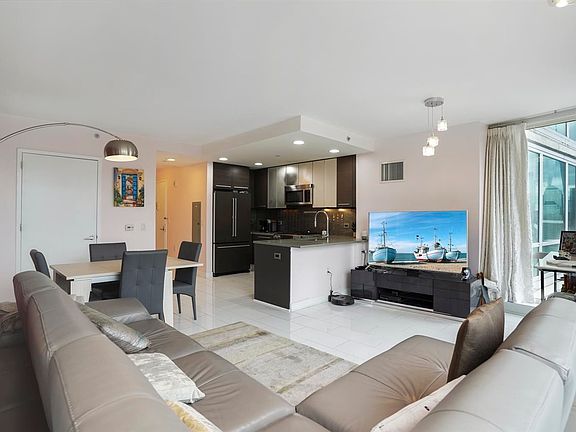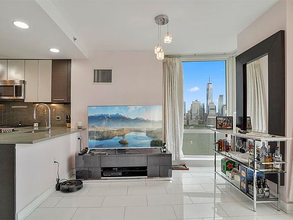 Located in the highly coveted Crystal Point in Jersey City, this gem is the epitome of luxury, boasting Valet parking, a sprawling open-concept floor plan, and sweeping views of the Manhattan skyline. This bright and beautiful 1 bed, 1.5 bath features 944 sq. ft. of livable space, high end finishes and ready to be personalized into your dream home. As you enter, travel across gleaming upgraded tile floors to discover the sun drenched living and dining area, featuring contemporary light fixtures, and floor-to-ceiling windows, where you and your guests can admire the unobstructed views of World Trade Centre. From here, gaze upon the gourmet kitchen, outfitted with ample custom cabinetry, and a full suite of professional-grade kitchen appliances, including a refrigerator, dishwasher, microwave, and gas range + hood. The refrigerator and dishwasher were recently replaced with brand-new units, and the cooking stove was upgraded just this month. Complete with spacious breakfast bar seating, you'll enjoy cooking and entertaining with ease. Your private bedroom oasis features a large California walk-in closet and floor-to-ceiling windows. A spa-like full bath completes the remainder of the space, showcasing a chic vanity, AutomatBidets in both bathrooms, and glimmering tile finishes throughout. This amenity-rich building offers a state-of-the-art fitness center, pool, crystal spa, children's playroom, and more. Falling nothing short of convenient living, one valet parking spot is included with this fabulous unit. A magnificent location leaves you near endless delectable dining destinations in Downtown Jersey City, including Razza, Porta and Hudson & Co. Also nearby, you'll enjoy close proximity to major transportation options like the Exchange Place and Newport PATH station, and the Exchange Place and Harsimus Cove Light Rail stations, offering convenient travel around Jersey City and into Manhattan. Photos are older, walls are no longer red.