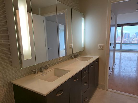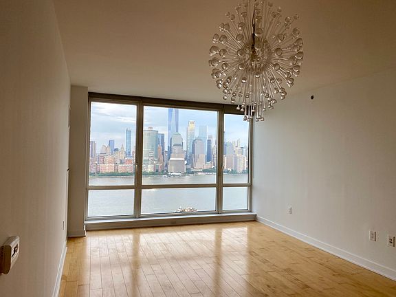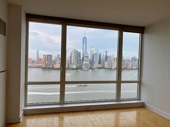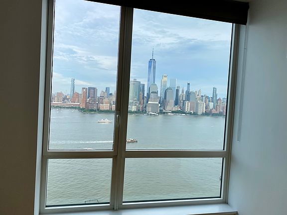 In Jersey City's premier Luxury building on the Waterfront. Fantastic and unbeatable views of New York City. Floor to ceiling windows, bathed in sunlight, hardwood floors, high end appliances, quartz countertops, luxurious large bath with double vanity, soaking tub and standing shower and additional half bath. Freshly painted, window treatments, Valet parking for one car included, 24 hour concierge, state of art fitness center, Jacuzzi, Sauna, conference room, screening room, outdoor pool, barbecue and roof deck. Conveniently located between Newport and Exchange Place Stations. Walking distance from grocery stores, mall, restaurants, ferry and light rail. Owner pays water and gas. Renter is responsible for electric.