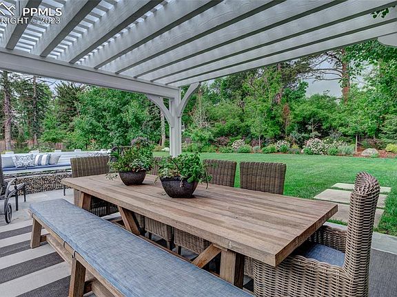 Historic charm is perfectly blended w/modern luxury in this landmark property nestled on a lush acre just two blocks from the iconic Broadmoor Hotel. Expanded & totally remodeled in 2016 & 2017, the home is a private sanctuary & offers a resort lifestyle w/amenities that include a pickleball court, in-ground trampoline & a grand patio w/pergola, blue slate floor & an inviting conversation area w/a firepit surrounded by built-in benches. The home boasts 6574 sq. feet + a game room w/an additional 575 sq. feet. The home's interior reveals impeccable detail w/special touches such as rich crown moldings, custom woodwork & cabinetry, cozy window benches, classic glass doorknobs, lovely light fixtures, hardwood floors, beautiful bathrooms & 6 beautiful gas fireplaces w/custom mantels. Also, the home has new Pella doors, new Pella windows (80% are new), upgraded plumbing & electrical, 3 furnaces, 3 central air units & 3 laundry facilities. The spacious main level has a variety of living areas: a sunroom, family room, formal living room & a comfy TV room. Each room is picture perfect. (These living areas offer flexibility & could be converted or used for other purposes.) Also on the main, there is a new laundry room, a powder room & a delightful guest wing w/bedroom & bath. Added in 2016/17, the stunning sunroom offers a vaulted tongue & groove ceiling w/2 skylights, a big fireplace flanked by window benches, blue slate floors & a wall of glass w/French doors that open to the grand patio. The gourmet kitchen features a big center island w/slab granite, pantry & a Wolf gas stove w/two ovens, 6 gas burners +griddle. The formal living room & TV room offer even more options for entertaining or relaxing. Upstairs there are two guest bedrooms (one is ensuite), a study & the incredible master. The master suite has a charming fireplace & a 5-piece master bath w/heated floors, steam shower, dual vanities, slipper tub & fireplace. The huge master closet has a laundry closet.
