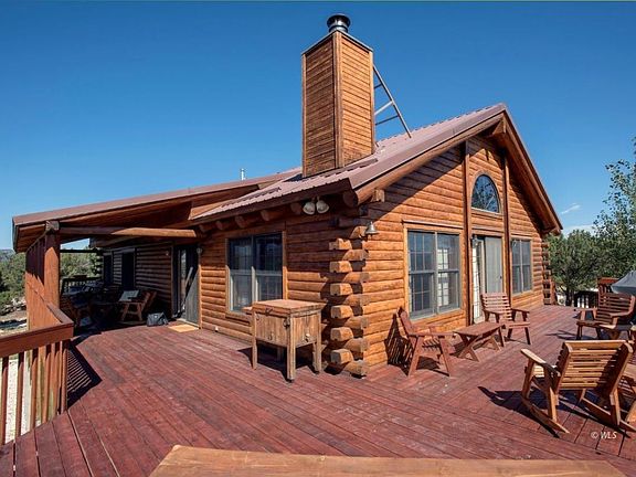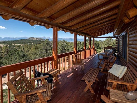 A Western Lifestyle Equestrian Facility: 385 pristine mountain acres, 5+ miles of groomed equestrian trails, 110 year old authentic miner's cabin, 3,942 square foot ranch style custom cedar "Real Log Home" from Montana in excellent condition with huge deck & beautiful landscaping, open floor plan, vaulted ceilings, spacious kitchen with island, granite countertops, 2 ovens and gas range, bedroom suite and 2 bedroom/offices on main level, walk-out lower level living includes 2 addt'l bedrooms, full bath, shop, exercise room, wine cellar, & pantry, garden shed with Onan propane backup generator, 2-car carport with storage, improvements include a 12' x 52' barn for up to seven horses, a hay barn stores up to 800 small bales, utility shed with electricity & 3 frost-free watering posts, a 60' round pen, a 72' x 140' outdoor arena with covered viewing area and a fully insulated 13,120 sq. ft. (164 'x 80') lighted indoor arena complete w/tack room, bathroom, 2 large automatic garage doors and vehicle storage area.Breathtaking panoramic views along with abundant wildlife and star filled skies! Close access to 65,000 ac. of BLM/Nat'l Forest and Grape CreekâEUR¦an excellent trout stream.