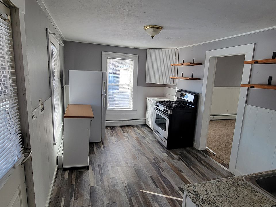 The adress on the title is "2 406" River St. It is supposed to be just 406 River Street 2 bedroom apartment 2nd floor, utilities are not included. Gas hot water baseboard for heat and gas stove for cooking. Dishwahser is currently installed and there are washer and dryer hookups available but would need to provide your own washer/dryer. Off street parking for 2 cars. Trash is included. Month to month lease agreement. No smoking inside the apartment. Monthly rent paid through venmo