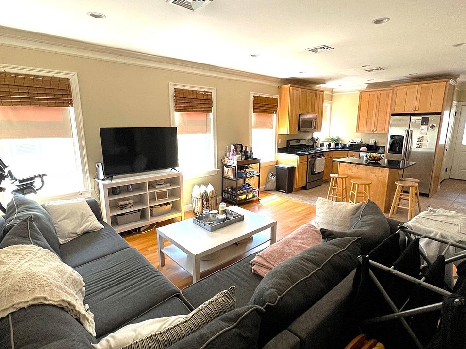 Great renovated three bedroom, two baths, with hardwood floors, big bedrooms, great closet space, in-unit laundry, central A/ C and deck. $4300 first. security and brokers fee, 9/1 move in no pets.