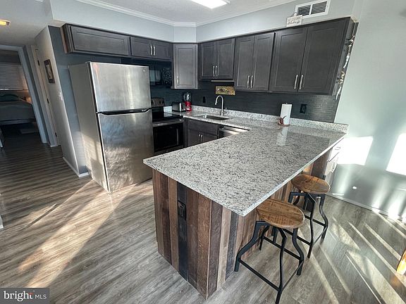 Fully renovated, southern exposure 2 bedroom 2 full bathroom Oceanview unit in Oceanfront building just one unit back from the beach! Located on the 2nd floor, the beach is just a short walk down the stairs or a quick ride down the elevator. From your large private balcony cherish the awe-inspiring views of the sunrise over the ocean and sunsets over the bay. This unit has been fully renovated from top to bottom in 2022. These renovations include a Master Bathroom with custom tile floor and a large walk-in shower with custom tile finishes and frameless shower enclosure. Hall bathroom with custom tile floor and a frameless glass tub/shower enclosure. New self closing kitchen cabinets with granite countertops, new Stainless Steel kitchen appliances, and all new luxury vinyl plank flooring throughout. This unit also comes with 2 designated parking spaces. Located only two blocks away from Seacrets, five blocks from the Convention Center, and within walking distance of numerous Ocean City restaurants, attractions, shopping, and so much more. This is not only a fabulous condo to live in, but also an excellent investment opportunity.