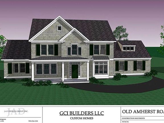 Experience refined craftsmanship and comfort in this nearly 3,200 sq. ft. custom-built 4-bedroom, 2.5-bath Colonial set in a peaceful rural setting within the sought-after Mont Vernon and Souhegan school districts. The open-concept design welcomes you with a grand foyer leading to a spacious family room featuring a cathedral ceiling and gas fireplace. The kitchen blends style and function with a large center island, custom cabinetry, and seamless flow to the dining and living areas—perfect for entertaining. A first-floor home office or study, formal dining room, and convenient laundry add everyday practicality. The primary suite offers dual closets, a luxurious bath with a custom-tiled shower, and a soaking tub for relaxation. Additional highlights include a three-car garage, first-floor mudroom with built-in bench seating, and composite deck and front porch ideal for outdoor enjoyment. The walk-out lower level provides future expansion potential. Located just five minutes from charming downtown Amherst, this home offers the perfect blend of quality construction, elegant design, and country tranquility—all customized to your preferences. Time to meet with Custom Home Builder and Make Selections. Located across the Street from 34 Old Amherst Rd