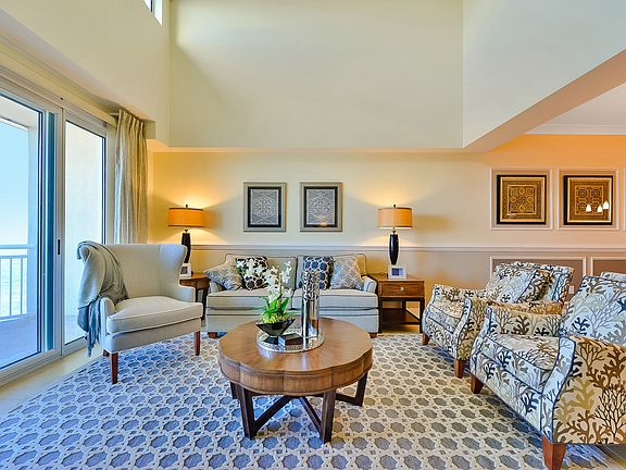 Rare ''Sky-Towne'' residences is one of only two available in the entire building. Direct Oceanfront two-story penthouse featuring 4 bedrooms and a den. Professionally decorated and designed, sold fully furnished. Enjoy stunning oceanfront views from your living room, or captivating bayside sunsets from one of your two private on-suite bedrooms on the second floor. Call for more information about this or any other listing at The Gateway Grand.