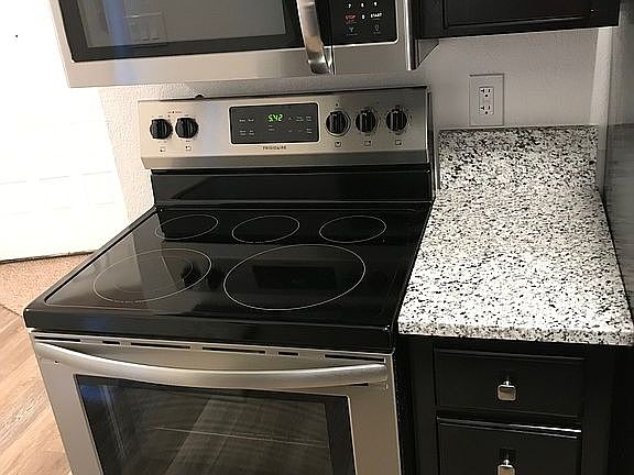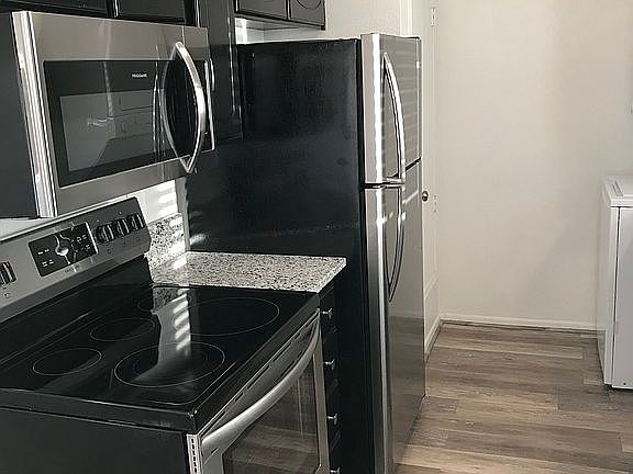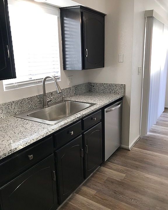 Kitchen features new granite counter-tops and stainless appliances. Bathroom features newer vanity and new lighting. Brand new ceilings fans can be found in master bedroom and guest bedroom and the recessed lighting in the living room. Home also includes a washer and dryer. Dining room opens to a nice private patio. The entire unit has a fresh coat of paint. This floorplan is ideal for entertaining and is near the beautiful community pool. Only service animals/emotional supports animals allowed. Features *Upgraded Cabinets *Granite Countertops *New Stainless Steel Appliances *Washer/Dryer in Unit *New Paint *New 6 Panel Doors *Upgraded Lighting *Ceiling Fans *A/C (not evap) *Large Closets *1 Covered Parking Space *Garbage included in Rent
