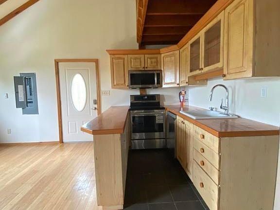 1 bedroom, 1 bathroom with loft that is larger than bedroom, can double as a second bedroom. Large open living room area. Dishwasher, Microwave, Stove, Refrigerator, Washing machine and dryer in unit. Apartment is above large garage that is also available for rental. Garage has bathroom and is a perfect mancave and or she shed. Garage rents for $850 separately, with apartment rental is $500 a month total $1750, $50 monthly discount for apartment rent paid before the first of the month. Nice quiet area. Utilities not included, renter must have renters insurance, shared back yard. No Pets. Lawn maintenance and snow removal to stairs included. Garbage and recycling removal included. No smoking on the property. Listing is Apt-1 on left side. Two parking spaces with apartment. Open to two year lease. Apartment is currently rented limiting views. Appointment for viewing after 12/14/2024.