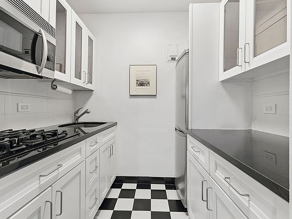 Meticulously designed with custom built-in furniture accented by bold, mod fabric patterns and clad in vibrant green carpeting 2E embodies a lively, inviting ambiance that's at once playful and refined. Every detail has been thoughtfully curated, from the sleek Murphy bed that optimizes space without sacrificing style, to the abundance of storage - including three spacious walk-in closets and extensive built-ins that keep living effortlessly organized. A modern, thermostat-controlled HVAC system ensures year-round comfort with remote climate control. East-facing windows welcome bright morning light into a thoughtfully designed layout, where a built-in desk overlooks the building's lush gardens - for work, inspiration, and relaxation. The bathroom pairs classic fixtures with a high-efficiency TOTO toilet, and the kitchen is equipped with a convection oven alongside ample custom cabinetry, making organization a cinch.