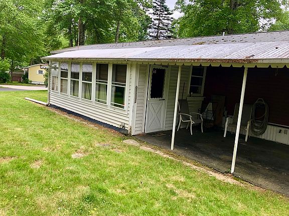 Welcome to 2 5th St in idyllic Nanatonqua Park! Very quiet 55+ mobile home park! Updated inside with new floors in 2017. This home is located on a corner lot with mature trees in a lovely front yard. As you enter from the enclosed porch you will notice a new addition of a pellet stove making this space functional in colder months. Inside you step into a generous eat in kitchen equipped with full cabinets and a large pantry along with immediately to the left of the kitchen you will see the washer and dryer and entrance to the secondary bedroom which boasts two single closets! to the right of the kitchen you will find a huge living dining area with picturesque windows overlooking the front yard immediately off of the living dining room you will find a large Primary bedroom. The List price includes the park share fee of $17,500 and with an HOA of $210 per month you can reduce your living expenses but not your style of living!