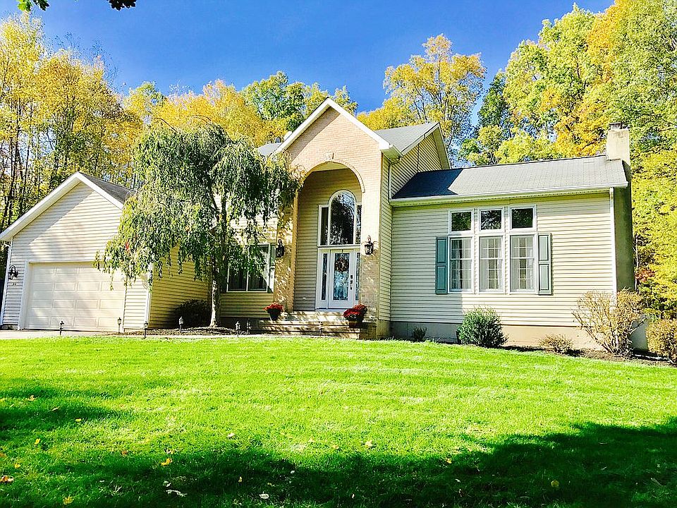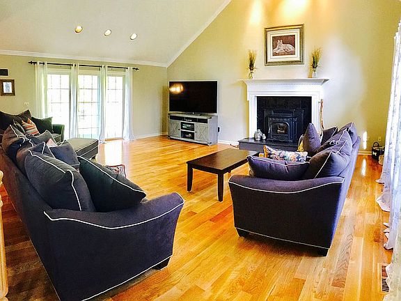 Hidden Gem amid total privacy offering 4 Beds & 3.1 baths. First level features open Floor plan with hardwood throughout, crown molding, great room with cathedral ceiling and pellet stove insert, spacious eat-in kitchen wired for sound with island, large peninsula, double oven and propane range, formal Dining room, and bedroom/office. Second level features large master bedroom with two walk in closets and ensuite with heated floors and spa shower with rainfall head, large floor bath with jacuzzi tub, and two additional bedrooms. Finished lower level adds over 1,000 sq ft of living space with full bath, full wet bar, propane fire place, possible 5th bedroom and room for pool table and home theater. Exterior includes large trex deck wired for sound w/ propane hookup, Gibraltar pool, Irrigation system and pet fence. Two car garage, large driveway with plenty of parking, newly built shed and brand new central air. If you enjoy entertaining this is your house!
