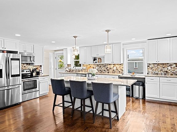 Located in coveted Sunset Point, this coastal gem, beautifully renovated in 2017, offers four levels of versatile living with bay and Worlds End views. The main floor features a bright, open kitchen, dining, and living area with custom built-ins, gas fireplace, and large island, ideal for everyday living and entertaining. The dining area opens to a back deck for easy indoor-outdoor flow. A first-floor bedroom offers flexibility for guests or a quiet study. Upstairs, the primary suite includes a spa-like bath, walk-in closet, and private balcony. Two additional bedrooms and a full bath complete the second floor. The top floor is perfect for a studio, media room, or home office with its own balcony. The finished lower level includes a wet bar, gas fireplace, and full bath. Additional highlights include central air, a whole house generator, hot tub, shed, sprinkler system, public water, and nearby boat ramp.