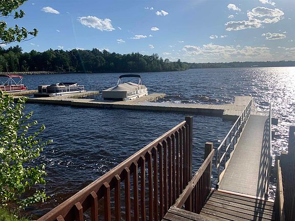 Perfect year-round getaway! Welcome to this cozy 2 bedroom condo on the Rainbow Flowage. Enjoy the simplicity of coming to relax, snowmobile, fish or watersports on this 3153 acre lake. Max depth of 28' with abundant panfish, walleye, northern pike along with musky, large & smallmouth bass. Leave the lawn care and snow removal to the association so you can truly enjoy your time here. Low monthly dues of $103. This home was formerly a bar, completely remodeled in 2006 into 2 condo homes. 7607 unit#2 is a 2 bedroom property with open concept kitchen, living, dining area and great sun deck overlooking the water. Attached two car garage and laundry located at entrance for your convenience. Property/condo units have shared conventional septic system and well. Shared dock and boat slip for your enjoyment and convenience. Nature and relaxation is calling, don't let this one slip away! Call for your personal showing today.