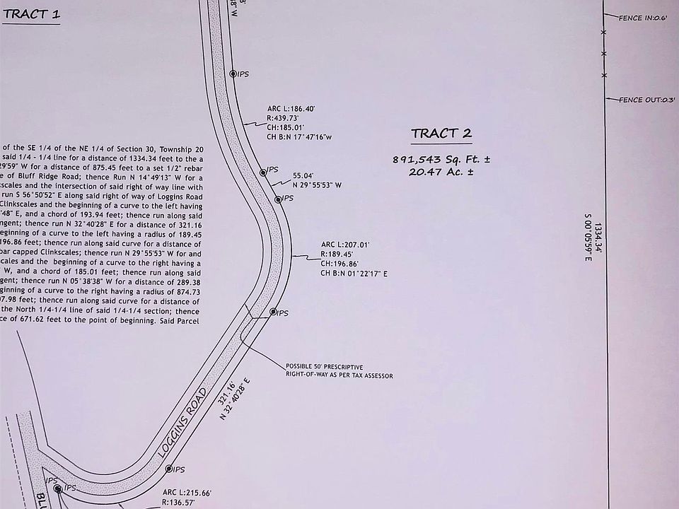 Approximately 20 1/2 acres with multiple possible homesites. There are (2) tracts available that can be purchased together or separately. In total, there is approximately 33 acres. Paved road access from Bluff Ridge Rd as well as Loggins Road. This is tract (2) of (2) of parcel ID 42-00-30-1-000-009.000