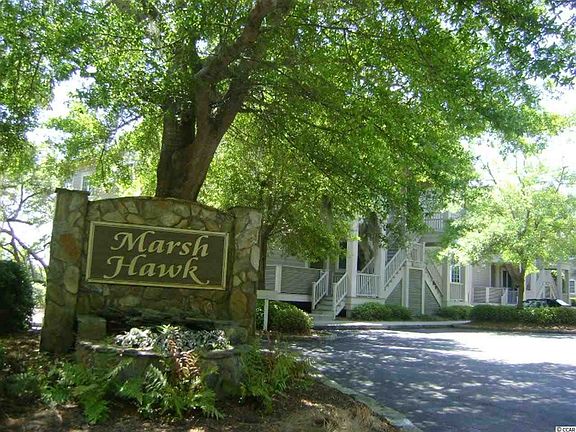 This exceptional property is well located on the first floor of the first building in close proximity to salt water pool and golf cart parking. Enjoy beautiful sunrise views overlooking the marsh where wildlife abounds. Home is beautifully appointed with new hard wood floors in dining and living room areas. New carpet in bedrooms.Wet bar close proximity to the screened porch ideal for entertaining friends and family. Location is in the second building from the main entrance into Marsh Hawk .