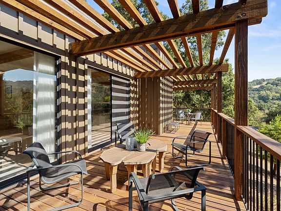 The needs of home have changed. Home is now a place to work, go to school, have your own separate space, and even accommodate additional members of a household. Space and quiet are taking on new importance. A spacious, light filled, open living room with tall beamed ceilings and large windows opens to decks facing the views. Enjoy a morning coffee or tea with a view of the heritage oaks and surrounding hills from a remodeled kitchen featuring an island and breakfast area, opening to a private deck with inviting natural views. Work from home from an upstairs office with a slider out to a grove of oak trees, and another downstairs with windows on two sides and commanding views of the surrounding open space. A second light filled family room on the lower level opens to the lower deck with views, and provides an additional area for remote learning, relaxing or hobbies. Accommodate longer term guests in a downstairs suite that opens to a private deck, and potentially a separate entrance.