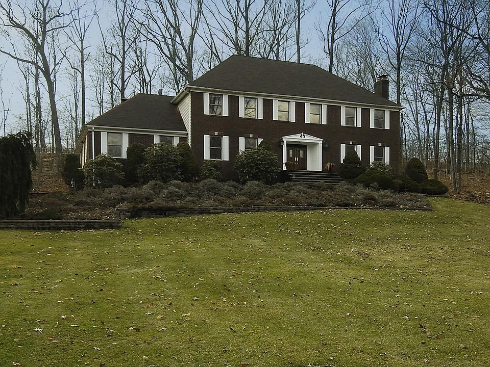 Once in a rare while a truly magnificent home such as this becomes available at a price that is simply too attractive to pass up – even in a challenging real estate market. This handsome brick residence sits majestically atop a beautifully landscaped 2 acre lot - at the end of a quiet cul de sac. The first floor features an impressive entry foyer, charming living room with fireplace, large kitchen with separate dining area, huge formal dining room, office/den and a magnificent great room with double fireplace, soaring ceilings and an abundance of natural light. The 2nd floor includes 3 large bedrooms, a hall bath and large master suite that features a huge walk-in closet and spa-like master bath. The home also features a finished basement with half bath, 4-car garage, large rear deck, hardwood floors, freshly painted rooms and central air conditioning. As if this were not enough, owner reports that the home’s footprint can be expanded by 13% without the need for a variance.