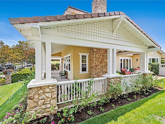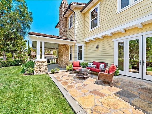 From its timeless wraparound entry porch to custom interior millwork that evokes luxurious New England estates, this spacious Covenant Hills home at Ladera Ranch offers classic elegance. A premium corner homesite extending about 7,408 s.f. embraces the two-story residence, which features 5 bedrooms and 4 baths, including a main-level bedroom and a second-floor bath. Enter through a welcoming foyer and discover a formal living room with fireplace and built-in shelving, a formal dining room and more in approximately 3,720 s.f. Providing the perfect setting for casual gatherings, the family room opens to a gorgeous kitchen appointed with a large island with seating, granite countertops, a full tile backsplash, generous stained-wood cabinetry, a pantry, breakfast nook and high-end stainless steel appliances. Throughout the home, designer carpet, slate tile flooring, mosaic tile in bathrooms, plantation shutters, and custom crown molding and white wall panels lend an air of sophistication. Explore the height of luxury in a second-level master suite, where attributes are led by an oversized walk-in closet, a soaking tub, separate shower, dual sinks and a sit-down vanity. Graced with lush, professionally maintained landscaping, grounds reveal a long driveway with porte cochere, verdant lawns and a private side yard with patio. Settled behind guarded gates, Covenant Hills offers the finest homes in Ladera Ranch, with easy access to parks, trails and schools.