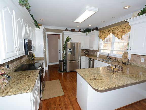 This all brick custom home is fully updated and shows like a model home. The corner lot is safely located on a culdesac with a side entry garage. Inside you will find gleaming hardwood floors throughout the main living areas, a master retreat on the main level, kitchen with granite, Grohe faucet & pantry, soaring ceilings and a gas log fireplace in the great room, a home office and a FROG. You will love the screen porch and fenced backyard. It even comes with a year home warranty. Attractively priced and an excellent value for the neighborhood and condition means it won't last long.