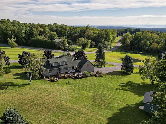 Charming Cape Style Home in Beautiful Country Setting. Located approximately 15 minutes from downtown Plattsburgh. This lovely home sits on a 1.63 acre corner lot with mature trees and perennial gardens. Entrance foyer features built-in bench and storage. Kitchen/dining is open concept with ample cupboard space and countertop work area. Living room features a cultured stone fireplace with wood burning insert for cozy winter nights, a handmade butternut wood mantle, and built-in bookshelves. Main floor primary bedroom has full bath and walk-in closet. Newer carpeting in upstairs bedrooms. Home has an abundance of closet and storage space. Basement gym, new wet bar with quartz countertop, and entertainment room/office enhance the living space. Tiered IPE Brazilian Hardwood back deck with cable railings and double awnings for outdoor entertaining. Breezeway to detached garage which also joins back deck with IPE wraparound front deck. 12' x 20' storage shed with metal roof installed in Fall of 2022. Enjoy expansive views of the Adirondacks and Lake Champlain a short distance from your front door. Home has been Pre-Inspected. Current land tax amount is calculated on previous assessed value of $338,600. Electric - averages $120/month; Fuel Oil - averages 525 gallons/year. Internet Provider - Spectrum. Bedroom curtains (child's room) are not part of sale. Showing Instructions - Lock Box on Breezeway Door. Please do not let the cat out. EASY OFFER LINK - https://www.dotloop.com/my/loop/p/1CYMwo3Uxu4?v=GjYue