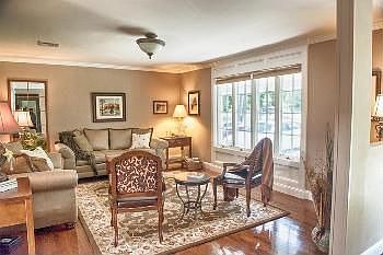 Nothing to do in this completely renovated ranch style home but move in! Kitchen with granite counters, stainless steel appliances and center island opens up to the dining area and family room with built ins. Sliders lead to the deck and peaceful back yard. Living room with recessed lighting, master bedroom with walk in closet and "spa like" master bath. Two additional bedrooms with lots of closet space, hardwood floors throughout, crown moldings and attention to detail. Truly a delight!