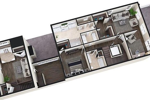 - Floors: Hard Wood, Wall to Wall, Ceramic Tile