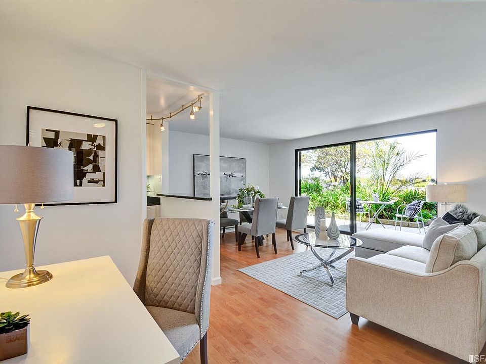 This one-bedroom, one-bathroom residence at Watergate on the Emeryville Peninsula is built for the current moment. Open plan living space, a landscaped patio, and the tranquil waterfront setting create peace of mind without compromising on lifestyle. A charming patio, framed by verdant landscaping and views of the Oakland and San Francisco skylines in the distant background. Significant storage as well as room for a home workstation, for today's professionals. The large bedroom offers pleasant natural light. An adjacent bathroom and a fully walk-in closet. Outdoor amenities, including; pools, health clubs, saunas and steam rooms, and racquetball and tennis courts. The location provides breathing room while remaining nearby to the best of city life, including high-end shopping, dining, and recreation (Emeryville Marina and Park, McLaughlin Eastshore State Park, trails for biking and running, picnic and barbecue grounds, and Public Market)