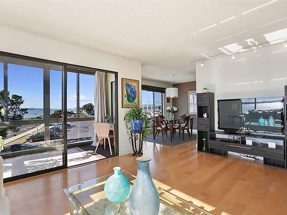 Open House Sat and Sun 2PM - 4:30PM This extremely rare 1bd/1ba corner condo in the sought after Watergate complex boasts amazing water views as well as gorgeous views of the Bay Bridge, Golden Gate Bridge, Alcatraz, North Bay and Emery Cove Yacht Harbor! Beautiful engineered maple floors flow throughout the spacious living room and formal dining area. Kitchen updates include a tile backsplash and newer, glass front cabinets. The bathroom has been updated with a new vanity, medicine cabinet, shower tile, refinished tub, and porcelain flooring. The enclosed balcony is a perfect spot to revel at the stunning sunsets over the Bay as you relax in your amazing new home. Enjoy Watergate's 4 swimming pools, spas/hot tubs, fitness center, steam rooms, saunas, locker rooms, and 4 lighted tennis courts. Lounge in the clubhouses or stroll down the greenway and boardwalk. Plug in to multiple EV stations for resident use. The on-site 24hr security and HOA office support residents.