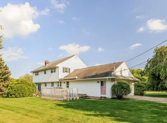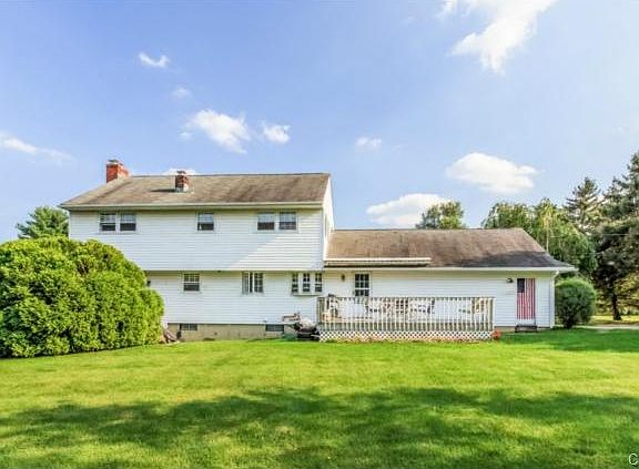 Location & perfect location. Just what you've been looking for: A 4 bedroom 2 1/2 colonial on a perfectly flat nearly one acre property. The side yard has a lovely above ground pool, patio & new stone wall. The deck overlooks the back yard. Nearly all hardwood floors. Kitchen w/large dining area. The front-to-back living room is complete w/fireplace. Spacious Master Suite has a picture window & full bath. There are three more generously sized bedrooms. Fun for the adults and children alike in the finished lower level w/ fireplace & sliders out to the side yard.This solidly built home has a year old oil burner. It's ready for your TLC personal taste and touches to make it your own.