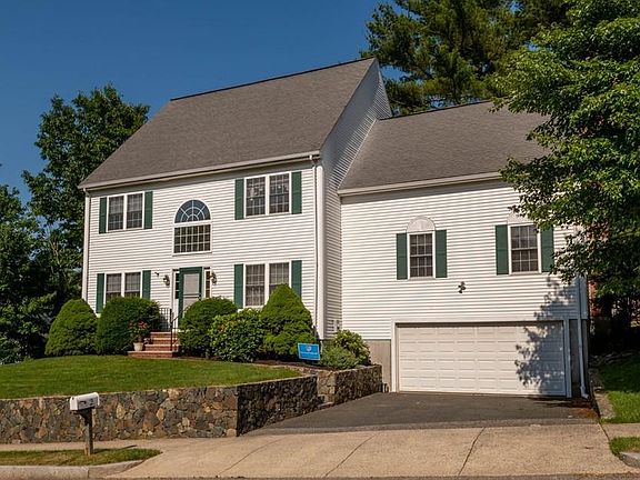 Class,Glamour,Beauty, Space All-In-One..Welcome to 2 APPLE HILL LANE, STONEHAM. This 25 year young, corner lot Colonial is the entry home of a Cul-De-Sac of high end up to 1 Million Dollar homes. As you enter the home turn right entering through the glass French Doors to the study/den or turn left and enjoy the Full Length Fireplaced Living Room/Dining Room Combination. Hardwood floors shine and Bay Windows bring in the light. The Dining area leads to a Large Island, Fully Applianced Kitchen with Double Sink, Stainless Steel Appliances and Built In Microwave. Off the kitchen the doors open to a Deck and Private back yard or step up to a Fantastic, Huge Great/Family Room. The 2nd floor boasts 4 bedrooms and Master Suite that steps up to a Master Bath with Jacuzzi tub. So many amenities: Dual Central Air System, Inground Sprinklers, Nest climate controlled thermostats, 1st Floor Laundry, Recessed Lighting and Gutter Guards. Basement plumbed to begin your potential in-law.