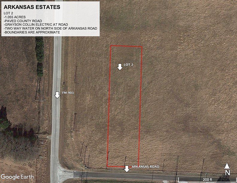 Builders and Buyers wanted! Lot 2 in Arkansas Estates, Sadler! Beautiful one acre Plat Approved lots ready for your custom home or Barndominium! 1600' minimum build! These lots have paved county road frontage, Two-Way Co-Op Water and Grayson Collin Electric. Minutes from the Hagerman Wildlife Refuge, Lake Texoma, Casino and Golf! 4 lots left available all are 1.055 acres. Lots 1-4 all on MLS.