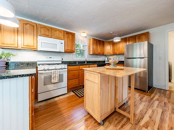 Adorable home on a cul-de-sac located near Snake Pond! This Cape style home features an open floor plan, living room with a wood-burning fireplace and a kitchen with granite counters. A slider off of the kitchen leads to a large deck, and a good size yard with new incoming grass! Three bedrooms, one on the first floor off of kitchen, and two upstairs. Two full bathrooms, one on the first floor with laundry and one on the second floor to the primary bedroom. The basement features a partial finished room awaiting your new visions! Welcome Home..
