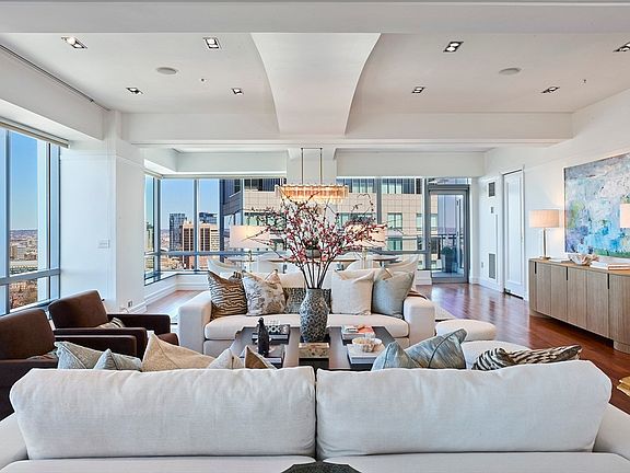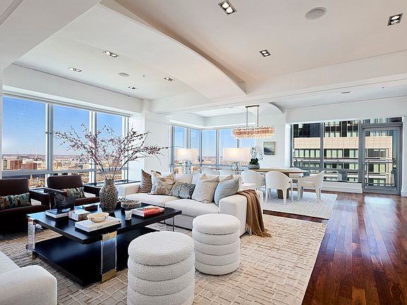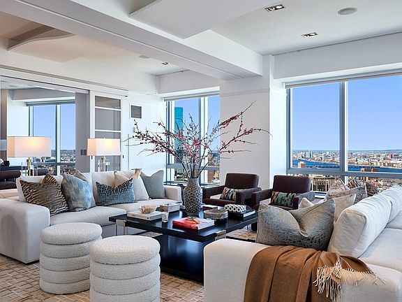 RITZ CARLTON SOUTH TOWER-ARCHITECTURAL DIGEST WORTHY! BREATHTAKING VIEWS IN EVERY ROOM FROM THIS 35TH FLOOR BEAUTY! Welcoming foyer opens to "Walls of Windows" overlooking one of the best views in this city; These panoramic views showcasing iconic Boston & beyond from your spacious living & dining rooms, perfect for entertaining; Swinging door to stunning designer kitchen, chef's dream space w/ granite waterfall peninsula, banquette seating & lots of great counter space & lighting; Beautifully done primary suite w/3 custom glass doors, built-in systems, even sliding laundry basket; Impressive primary bathroom w/ 2 huge vessel sinks, floating vanity, separate shower & soaking/whirlpool tub; 2 other good size bedrooms, both en suite w/ window seating; Den/office/media rm right off living room separated by glass sliding doors w/ built-ins; Recessed lighting & walnut wood floors throughout; Most rooms w/cove lighting; Sound system; 2 deeded valet spaces & guest parking; IT'S A MUST SEE!