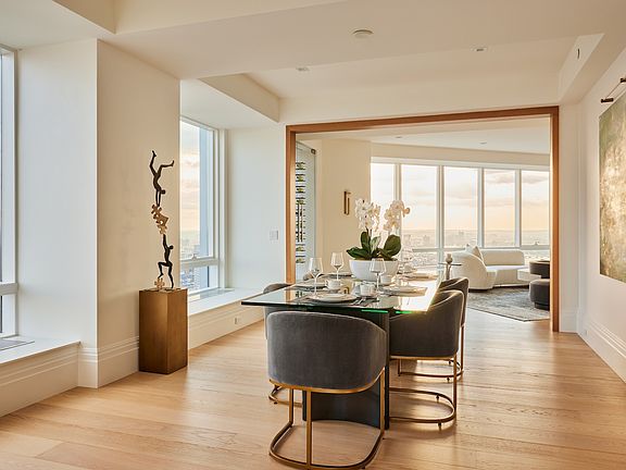 Penthouse at the Ritz-Carlton Residences offers luxury living with stunning panoramic views of Boston. This home features 3 bedrooms plus a study, 3.5 baths, custom millwork, a Christopher Peacock kitchen with Miele appliances, European white oak floors, and spa-like marble baths. Includes in-unit laundry, central A/C, and utilities (electricity, water, hot water, garbage). Enjoy 24-hour concierge, Ritz-Carlton Hotel Services, Equinox access, and two valet garage parking spaces.