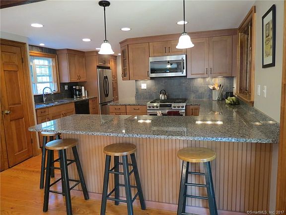 Escape to the country in this gorgeous antique Colonial set on a picturesque 5.40 acres in the beautiful town of Lebanon! This spacious 3 story home is highlighted with the perfect blend of modern amenities & old-fashioned charm! The stunning remodeled eat-in kitchen has granite counter tops, stainless steel appliances & a delightful fireplace! Immediately off of the kitchen is a brand new sun room showcasing wonderful views of the tranquil backyard. With 5 bedrooms and 3½ baths, the accommodations of this house are spectacular for a large family. There are countless options for everyone to gather in the many expansive living areas: a sunken family room with beautiful built-ins, a huge living & dining room both with charming fireplaces, & upstairs, a casual sitting area great for the gamers in the family! The master bedroom is highlighted with high ceilings & huge windows that bathe the room in natural sunlight. It also contains several large closets & a full bath with double sinks & whirlpool tub. Outdoors, there is a detached 3 bay garage with 3 brand new overhead doors, a huge 50'x30' barn great for storage, a large field perfect for animals, & plenty of space for a garden! A whole house automatic standby generator also included! A true country paradise where you can get away from it all, this property is surrounded by over 100 acres of forest, protected farmlands & Joshua's trust; yet it is also conveniently located close to Rt. 32 for an easy commute!