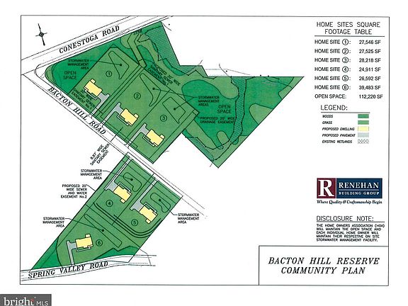 SITE WORK HAS BEGUN. LOT 1 IS THE SPEC HOME. LOTS 4 AND 6 ARE SOLD. PLEASE REVIEW THE DOCUMENTS SECTION FOR MORE DETAILS. Pre-construction opportunity - Bacton Hill Reserve is a community of 6 semi-custom homes built by award winning Renehan Development, Inc. Located in East Whiteland Township and top-ranked Great Valley School District! Our community is minutes away from Rt 202, Rt 30, Great Valley Corporate Center, the PA Turnpike slip ramp and the Great Valley high and middle school campus. Pictured for lot 2 is our standard front elevation. There are a total of 6 front elevations to choose from! The standard home will include 4 bedrooms, 2.5 bathrooms, a 2-car garage and a full basement. Exceptional features included with each home are covered front entrance, 1st floor office, beautiful gourmet kitchen with granite countertops, stainless steel appliances, 42" cabinets and island with breakfast bar. There are fabulous structural options that can be added including: breakfast room addition, family room extension, 3rd car garage, 10' x15' deck and wrap around front porch. See included pricing for elevation selections, structural options, and lot premiums. ** House photos are representative of Renehan Building Group, Inc. product. They may depict upgrades that are not included in the Bacton Hill Reserve Standard Luxury Features.** GPS to 99 N Bacton Hill Rd, Malvern.