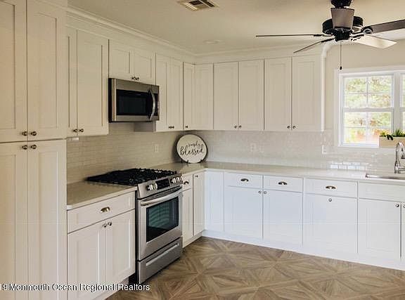 STUNNING! Move right in to this beautifully professionally renovated home on a quiet culde-sac street. New kitchen cabinets with quartz counter tops, subway tile backsplash and stainless steel appliances. The master bath is sure to impress with a large seamless glass shower stall, soaking tub and stunning vanity. Home features Italian made porcelain flooring in the foyer and kitchen, gleaming hardwood floors, and carpeting in the bedrooms. Full finished basement ready for hanging out (Rough Plumbing in place for a basement bathroom) Close to all shopping, major highways and the Jersey Shore. Call for a private tour today.