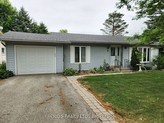 Welcome to 2 Balsom Crt. Located in the Adult Lifestyle Community of Tecumseth Pines. This Modular Home features 2 bedrooms one bath attached garage with a full basement awaiting you personal touch or use it as a workshop and storage. Enjoy the recreational center which features indoor pool, tennis/pickleball court, exercise room, billiards/darts, shuffle board, bowling, library, workshop and a multi-purpose room. Monthly land lease $1050.00, estimated monthly taxes $50.31, estimated monthly taxes on structure $88.90 Total due on first of month $1189.21 Water metered quarterly billing.