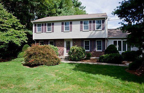 Set in a commuter friendly location, this spacious updated Garrison Colonial has both style and functionality. This 9 room Colonial offers 4 bedrooms, 2.5 baths and a finished lower level. The newly tiled Foyer separates the entertainment sized formal Living and Dining Rooms both featuring richly colored hardwood floors. The chef’s Kitchen has custom cabinetry, desk area, loads of pantry cabinets, Kitchen island with gas 6 burner countertop range, double oven, microwave, double stainless steel sink, new stainless refrigerator & dishwasher. Kitchen also has a large eat-in area with triple atrium doors & skylight bump out overlooking manicured side yard. The welcoming Family Room offers wood floors, vaulted wooden ceiling with recessed & track lighting, fireplace with granite, ceiling fan and atrium doors leading to sundeck. A half bath is located off the front entry way. The second floor features 4 Bedrooms and 2 full Baths. The sumptuous Master Bedroom has vaulted ceiling