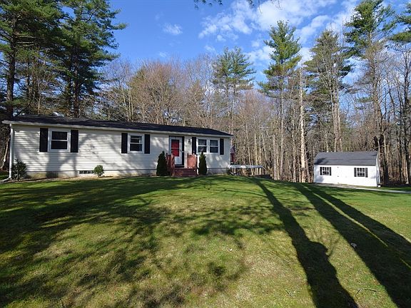 Come see this beautiful Ranch style home on lovely, landscaped lot in Newton, NH! This home boasts a 3-bedroom floorplan (see attached) or use one as an office or study! Prepare meals in the galley kitchen with nearby eat-in/dining area or out onto your large deck to entertain family and friends. For inside comfort, relax or take in a movie in your bright & spacious living room! A full bath compliments the rest of the 1st floor, with newer carpets and laminate floors throughout. Walk down into the basement area to find a cozy bonus room, w/ nearby wood stove to take off the winter chill! A full laundry station with washbasin is nearby w/ plenty of add'l storage! Outside there is a covered patio area and a firepit to warm your evening gatherings. Store all of your garden items, & more in the huge Reeds Ferry Shed! Plenty of privacy on this quiet dead-end road, with schools, transportation, shopping convenience, & town beach within minutes of your home! Showings start Sat. Apr 27th!