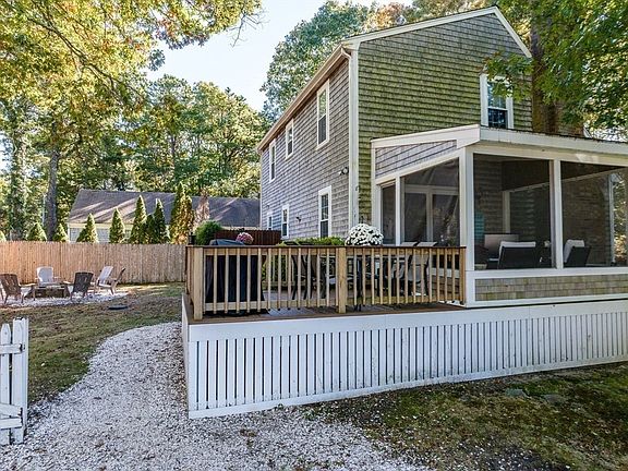 Living in Dennis is easy when the home has a NEW ROOF, HEATING SYSTEM and WATER HEATER. Attention boaters, fishing enthusiasts, or just sun & fun loving people: Your search is over! 2 Bayberry Lane is just 300 feet away from a deeded beach with access to Kelly's Bay and eventually out to the ocean. Imagine sitting in your screened porch at the end of the day watching the sunset? This home is where many memories were made and is ready for the next owners to continue the tradition. This classic Cape checks off all the boxes: Hardwood floors, open floor plan, wood burning fireplace, newer windows, economical gas heat, two full baths, large bedrooms, ample closet space, an easy care yard, and a composite deck. This Cape Escape offers a fenced in yard, outdoor shower and a firepit. All this and centrally located just a short stroll to the Cape Cod Rail Trail and Johnny Kelly Park which offers pickleball, tennis, ball fields and the Braille trail. Experience Dennis and live your dreams.